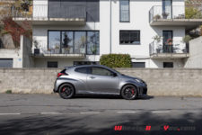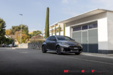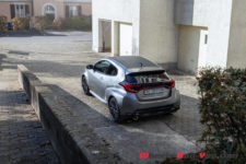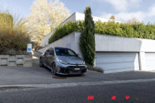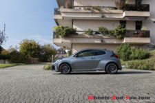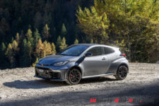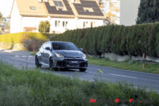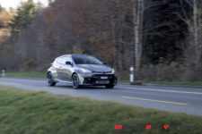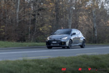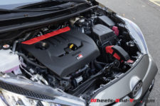 Pour donner vie à cette nouvelle GR Yaris, on retrouve le même 3 cylindres 1.6 Turbo mais qui voit sa puissance atteindre 280 ch, soit un gain de 19 ch. On gagne aussi un peu de couple avec 390 Nm au lieu des 360 Nm de la première mouture. Ce n’est pas grand-chose mais sur le papier, ça permet de gagner quelques dixièmes au jeu du 0-100 km/h que la nippone abat maintenant en 5.2 secondes.