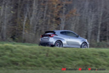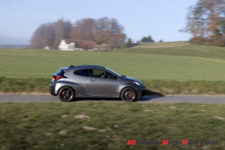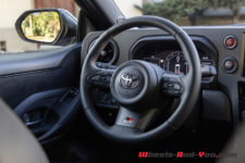 Mon collègue qui avait essayé la première génération n’avait pas été avare en compliments et, pour avoir moi-même fait quelques kilomètres avec, je n’ai pu que plussoyer à ses commentaires dithyrambiques. J’étais donc très impatient de prendre le volant de cette nouvelle GR Yaris équipée d’une transmission à double embrayage car, avec la version manuelle, il était assez difficile de rester raisonnable tant l’auto stimulait nos sens et nous poussait à l’exploiter franchement.
