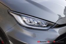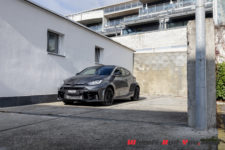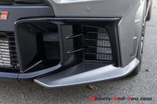 La face avant dispose d’une calandre un peu plus travaillée, avec des entrées d’air supplémentaires sur les côtés, rendant sa gueule encore plus agressive. Cet effet est accentué par l’inscription « GR Four » sur le radiateur. Les optiques sont aussi revues et intègrent une signature LED plus complexe, offrant une certaine modernité à son regard.