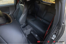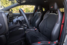 L’habitabilité aux places avant est très correcte mais surtout – et c’est un véritable plus par rapport à la première génération – le siège conducteur est installé 25 mm plus bas. Ce n’est pas suffisant pour certains mais l’amélioration est réelle. C’était l’un des principaux défauts de la première génération, tout comme le positionnement du rétroviseur central qui a aussi été revu. A l’arrière, l’espace est plutôt contenu et exception faite des enfants, on se sent plutôt à l’étroit. Enfin bon, la vocation première d’une GR Yaris n’est pas d’être une familiale. Le coffre quant à lui propose un volume de 174 litres.