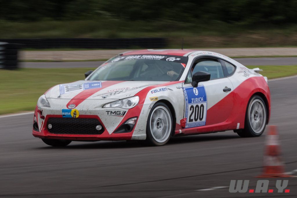 Petite intermède, lors de cette journée alsacienne, j’ai eu la chance de prendre les commandes pour quelques tours de la GT86 qui a participé à la course des 24 Heures du Nürburgring. Et ce n’est pas rien, puisqu’à cette occasion, la GT86 numéro 200 du Toyota Swiss Racing Team avait remporté la victoire dans la catégorie V3, venant à bout du tracé de la Nordschleife en terminant à la 78ème place du classement général de cette 40ème édition. Du coup, avec moi au volant et sur le circuit de l’Anneau du Rhin, c’était de la rigolade pour cette voiture ! Pas vraiment comparable à la GT86 de route, mais une expérience plutôt agréable avec des sensations uniques comme la brutalité de l’intérieur dépouillé, les odeurs d’essence et le comportement des pneus slicks. En quelques tours j’avais très chaud, un moyen de réaliser un peu mieux le monde qui sépare le conducteur lambda du pilote professionnel.