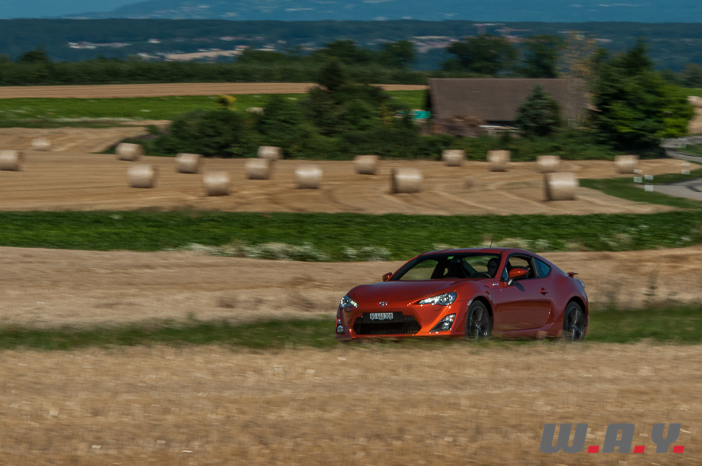 Parenthèse fermée, revenons en Suisse Romande et j’arpente dans tous les sens les routes que j’affectionne tout particulièrement. La voiture se comporte parfaitement bien, comme j’avais déjà pu le voir sur piste. Le châssis est ferme, la direction est très précise, c’est un régal. Agile et vive, la GT86 avale les virages à bon rythme, elle vire à plat, quasi aucune prise de roulis, pas de sous-virage, vraiment c’est très plaisant à rouler.