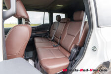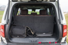 Pourvu de 7 places en option, le Land Cruiser voit l’espace de son coffre varier de 621 litres en configuration normale 5 places à 120 litres pour accueillir 7 occupants ou 2’063 litres pour faire la part belle au volume de chargement. J’apprécie tout particulièrement l’ouverture en deux parties du hayon qui permet par exemple de ranger un sac de sport sans devoir ouvrir complètement le coffre.