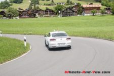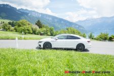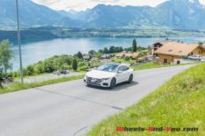 En un rien de temps, je me retrouve sur les rives du lac de Brienz. En analysant la carte de la navigation embarquée, je repère de belles routes serpentant les montagnes. De quoi me permettre de lâcher raisonnablement les watts en mode « Sport ». L’Arteon sort alors de sa timidité. Les changements de vitesse sont plus tardifs en accélération, de quoi me laisser profiter de toute la puissance disponible. La transmission intégrale travaille à fond dans ce relief escarpé, garantissant une motricité sans faille. C’est là le gros point fort de ce groupe motopropulseur. La direction gagne en fermeté, mais je ressens un léger manque de précision et de communication. La confiance est tout de même de mise, merci aux Pirelli P-Zero et au châssis étonnamment rigide, qui réalisent ensemble en ce terrain sinueux un travail remarquable, autorisant de passages en courbe toujours plus forts. Le soleil s’approchant dangereusement de l’horizon, je me décide alors de rallier Lucerne puis Genève, en adoptant à nouveau le style qui sied le mieux à cette limousine : le paisible rythme de croisière.