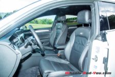 La sellerie cuir, siglée « R-Line » à l’avant, est de bonne facture et est complétée par des assises très confortables, réglables électriquement lors on occupe la place du conducteur ou du passager. Le maintien latéral est correct mais ne figure pas au chapitre des faits saillants.