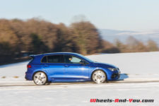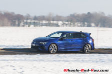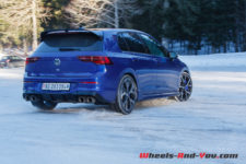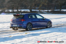 Au bénéfice du pack R-Performance, un mode « Drift » est proposé sur notre auto de test. Fondamentalement pas très utile, je me dois de l’essayer quand même, c’est mon côté enfant qui prime. Pour se faire, je me rends sur un terrain privé recouvert de neige et de glace. Dans ma tête, je me dis que cela reste une quatre roues motrices, mais en fait plus vraiment une fois le mode « Drift » activé. Grâce à la nouvelle gestion électronique de la voiture, elle « devient propulsion ». En effet, le système 4Motion associée à une répartition de couple vectorielle permet d’envoyer 100% de la puissance transmises aux roues arrière – 50% au maximum – sur une seule roue. Cela autorise ainsi de belles dérives de l’arrière-train. L’ESP étant totalement inactif, la glisse devient parfaitement faisable. Même sans béquille électronique c’est bluffant comme l’auto se gère avec une facilité déconcertante et en toute sécurité, le couple restant un minimum bridé.