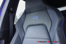 Les sièges « top sport » de dernière génération en cuir Nappa perforé avec appuis-tête intégrés reprennent également les couleurs noire et bleue et ils sont ornés du logo R. Dommage que seul le siège conducteur soit motorisé.