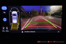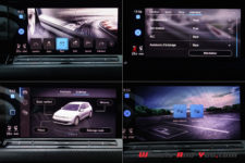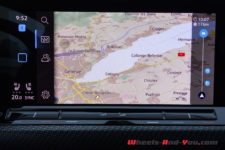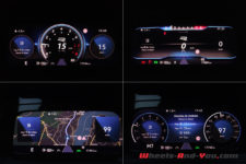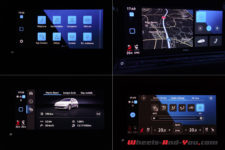 Un écran tactile de dix pouces ainsi que le système d’instrumentation digital proposent des modes d’affichage spécifiques avec notamment le compte-tours placé en plein centre et gradué jusqu’à 8000 t/min. En mode R, le régime moteur se lit sur une ligne horizontale. Possibilité aussi de lire la puissance instantanée délivrée par le moteur en kW, de visualiser la consommation, etc… Tout un panel d’informations, y compris la lecture tête haute, est ainsi disponible selon ses propres choix.
