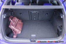 Les places arrière sont confortables et le coffre accueillera quatre bagages avec ses 374 litres. En rabattant les sièges, on obtient même 1’239 litres. Le fond du coffre peut se relever et se coincer grâce à deux ingénieux blocages latéraux. Dans ce sous coffre se trouve un grand subwoofer HiFi pour l’excellent système audio Harmann/Kardon de série sur ce modèle. En revanche il est dommage de ne pas avoir un hayon électrique. Tout est question de poids… c’est une sportive.