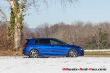 Je suis gâté car essayer un modèle R « presse », c’est rouler assurément dans véhicule à robe bleue et plus précisément le métallisé « Lapiz Blue » que j’affectionne tout particulièrement. Comme la Pierre Lapis Lazuli, cette couleur me détends et, qui plus est, aurait la vertu de protéger des pensées négatives. Vous pourrez la commander aussi en Blanc ou en Noir, mais avouez que la teinte de notre voiture d’essai lui va bien. D’ailleurs elle ne laisse pas indifférent et à plusieurs reprises j’ai croisé des conducteurs, en Golf GTi ou R ancienne génération, le pouce levé.