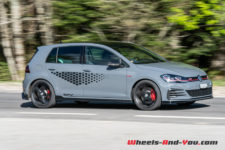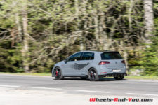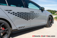Outre les jantes 19’’, le kit Reinfnitz propose également un abaissement de 20 mm de la hauteur de caisse, la régulation dynamique de l’amortissement DCC (en option sur la GTI) et la suppression du bridage à 250 km/h, permettant à la TCR d’atteindre 10 km/h de plus.