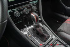 Comme sur la GTI, le moteur est accouplé à la bien connue boîte DSG (double embrayage) à 7 rapports mais ici affublée d’un autobloquant Haldex. La TCR est annoncée pour un 0 à 100 km/h abattu en 5.6 sec, soit neuf dixièmes de mieux que la GTI (6.5 sec). L’autobloquant y contribue certainement en améliorant la motricité car les seuls 45 ch ne peuvent expliquer une telle progression.