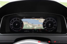 La poussée moteur est bien présente dès 2’000 t/min mais la courbe de couple plate entre 1’900 et 5’300 t/min développe une puissant très linéaire, au point qu’on se demande où sont les 290 ch annoncés. C’est plus une question de sensations sans doute car le compteur monte tout de même assez rapidement. Mais c’est tout sauf démonstratif, on est loin du « coup de pied aux fesses », malgré le turbo et la puissance annoncée. Et la boîte DSG à 7 rapports n’arrange pas vraiment les choses. Je trouve qu’elle accuse le poids des ans. Non qu’elle ne fonctionne pas bien mais elle est nettement dépassée par certaines concurrentes désormais, que ce soit dans la rapidité de son maniement que par certains à-coups de fonctionnement en conduite normale.