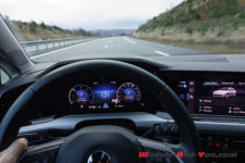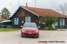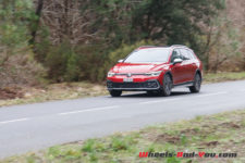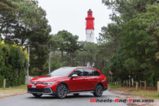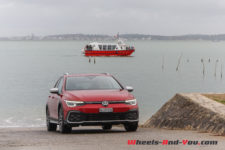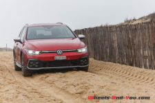 J’arrive au Cap Ferret frais comme un gardon sous un timide soleil qui me permet d’entrebâiller le toit ouvrant. Ce dernier reste silencieux jusqu’à 80 km/h. Terminée l’autoroute, j’enchaîne les virages sur des petites routes glissantes. Je quitte le mode « Confort » et me positionne sur « Sport ». La boite en position « S » n’est pas à mon goût dans son mode de gestion. Les vitesses tardent à passer ou bien ne rétrogradent pas au bon moment. Je reprends donc le lead en les passant à l’aide des minuscules palettes au volant. Sortant tout juste de l’essai de la Golf 8 R avec ses grandes palettes, je dois me réadapter. La direction se durcit fortement et devient plus précise sans point milieu. Je dispose de l’option direction progressive. Je ne pourrais dire ce qu’elle apporte en plus par rapport à un modèle qui n’en serait pas doté, mais pour CHF 230.- je recommande de cocher l’option, tant elle est agréable. De par sa longueur, notre Golf Variant n’est pas vraiment agile mais sans être pataude elle enroule les courbes.