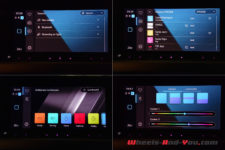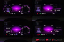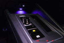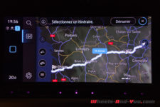 A l’avant le Digital Cockpit Pro de 10 pouces forme le « Cockpit Innovision ». Il offre une lecture facile des cartes routières que fournit le système de navigation « Discover Media » et de toutes les autres informations disponibles. Elles sont d’ailleurs nombreuses, permettant de configurer sa voiture à volonté. On peut entres autres, choisir son ambiance colorée parmi trente couleurs. Je choisi de ne pas me coordonner au rouge de l’extérieur et de prendre uniformément du bleu. Je vous l’ai dit j’aime le bleu… Alors des LED, bleu justement, soulignent le tableau de bord et les portières, apportant ainsi une touche apaisante en roulage de nuit.
