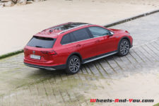 A l’approche de l’océan, j’ai un peu d’appréhension car les chemins sablonneux sont détrempés. Vais-je rester « tanqué » dans le sable ? Mode « Offroad » sélectionné, sur le couple, sans forcer, l’Alltrack passe et repasse sans s’enfoncer ni manquer de motricité. La gestion de l’ABS différente et surtout le 4Motion (coupleur Haldex avec blocage électronique de différentiel -XDF-) permet de s’en sortir sans difficulté. Alors, nous sommes bien d’accord, cette Alltrack n’est pas faite pour faire du franchissement, mais elle se débrouillera très bien dans tous les chemins, pentus ou pas, boueux, neigeux voir sablonneux, et le tout dans un confort remarquable.