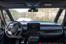 Avec une motorisation dynamique et un espace à bord très généreux, l’ID. Buzz LWB offre une bonne combinaison pour les longs voyages d’une famille nombreuse et/ou des équipements d’activité en plein air. De plus, grâce à des options comme la pompe à chaleur (CHF 1’115.-) ou la prise électrique 230V (CHF 440.-), bizarrement placée sous le siège du passager avant, il est prêt à traverser des frontières.