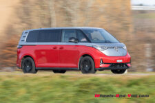 Dernier point et pas des moindre, le prix. L’ID. Buzz démarre à CHF 60’300.- dans une version courte très basique et une autonomie limitée due à une petite batterie de 59 kWh (environ 300 km). A l’autre extrême tarifaire, la version GTX LWB essayée ici démarre à CHF 80’420.- inclus quelques équipements intéressants. Notons que toute la gamme offre une garantie de 5 ans. Malgré ça, mon exemplaire d’essai affiche encore pratiquement CHF 15’000.- d’options dont certaines sont incontournables. En frôlant les cent mille francs, le véhicule arrive dans une zone tarifaire un peu exagérée à mes yeux, d’autant plus que la concurrence offre aussi son lot de minibus et autres transporteurs aux caractéristiques similaires.