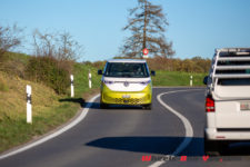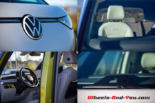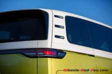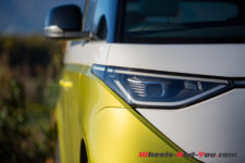 Les énormes logo VW blancs sont à eux seuls une expression du positionnement de l’ID. Buzz parmi les modèles de la marque. Le grand rond fait référence au passé, les T1 et T2 le portaient ainsi. Dans l’histoire contemporaine, les modèles électriques de la gamme ID reçoivent tous un logo blanc au lieu de la version chromée.