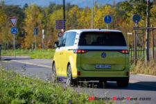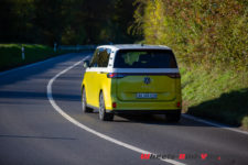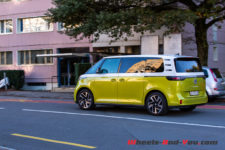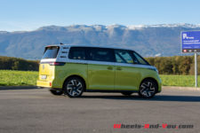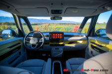 Au terme de mon essai, j’ai deux principales critiques contre l’ID. Buzz. Son autonomie d’abord, insuffisante pour un trajet de 300 km alors qu’une familiale doit pouvoir partir en vacances. Une plus grosse batterie devrait arriver mais qui entraînera un supplément de poids à déplacer. La seconde, c’est sa finition intérieure. Facturé presque CHF 85’000.- tel qu’essayé, je ne m’attendais pas à autant de plastique partout. Un compromis a sans doute été fait pour compenser le surpoids de nombreux équipements lourds comme les portes latérales électriques, les sièges électriques, le pare-brise chauffant, etc. Mais peut-être que pour un public néophyte séduit par la bouille de l’ID. Buzz, cet intérieur passe au second plan.