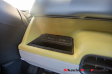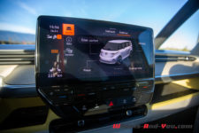 A bord, l’ambiance est similaire : épurée, moderne et colorée. De série, l’intérieur est gris et un peu triste ; heureusement, mon véhicule d’essai dispose du pack Intérieur Style Plus avec une sellerie mixte cuir et alcantara blanc cassé et des habillages bitons blanc et jaune comme l’extérieur. Je suis plutôt déçu par ses habillages tout en plastique peu flatteurs alors que les surfaces sont énormes ! Les contre-portes, la planche de bord, le bas de cette dernière, il y en a simplement partout. Du cuir, agréable au toucher, recouvre le volant et la sellerie mais c’est tout. Les deux sièges perforés ID pourraient provenir d’un autre modèle. Cependant, ils se distinguent à l’avant par des accoudoirs de chaque côté. J’avoue que c’est un argument pour conduire de longues distances en toute décontraction.
