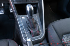 Alors que je mesure 1.82 m, je ne suis pas emballé par l’ergonomie générale proposée au conducteur. L’assise ne peut être suffisamment abaissée, le volant n’est réglable qu’en hauteur et la position de conduite n’est pas idéale. De plus, je retrouve cette incompréhensible inversion du levier de commande de boîte : du fonctionnement classique en mode automatique, on l’éloigne latéralement pour passer la boîte en mode séquentiel alors qu’il serait bien plus ergonomique de l’approcher du conducteur, sans compter que VW s’évertue toujours à inverser la commande séquentielle. Heureusement que les palettes au volant permettent de s’affranchir du levier, même si ces dernières tournent avec le volant.