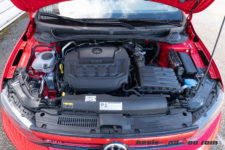Alors que le précédent modèle GTI était motorisé par un moteur TSi 1.4 l turbo qui développait 180 ch, VW prend le contrepied de la tendance au downsizing et propose désormais sa nouvelle version avec un propulseur 4 cylindres de 2.0 l turbo qui gagne 20 chevaux et offre désormais le chiffre rond de 200 ch (147 kW) à 6’000 t/min. Le couple progresse également de 70 Nm, passant à 320 Nm dès 1’500 t/min.