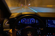 Démarrage sans clé via un bouton poussoir, l’échappement « Akra » titane, valves ouvertes, se fait entendrent. Ce quatre cylindres émet un son grave assez plaisant. Volant à méplat siglé R, le ton est donné. Reste à choisir le mode de conduite. Car il en existe plusieurs à sélectionner via une mollette sur la console centrale, derrière le levier de vitesse. Cela passe du mode Eco au mode Race via le Normal, Confort ou Individuel. En mode Eco, le volant est un peu mou et le moteur au ralenti tourne sous les 1’000 t/min. Pour ma part ce sera le mode Race. Le ralenti passe à 1’100 t/min, cela annonce la couleur. Le démarrage est canon aidé par le 4Motion Haldex et une boite rapide. Je pourrais faire encore mieux en utilisant le Launch Control mais, c’est plus fort que moi, je ne me résous pas à l’enclencher, tant je sais à quel point cela use la mécanique.