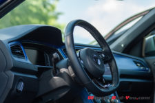 Pour une fois je trouve un intérieur presque gai. La présence d’inserts de couleur qui reprennent celle de la carrosserie sous forme d’alu brossé est plutôt sympa. La finition est bonne sur les assemblages mais, pour le prix, il reste trop de plastique dur.