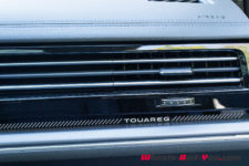Le Touareg se veut aussi un haut de gamme luxueux par sa technologie embarquée. Derrière le volant multifonctions, on trouve un écran de 12″ (Digital Cockpit) à l’affichage personnalisable. A droite, l’écran central de 15″ est orienté vers le conducteur. Il intègre de nombreuses fonctionnalités et les réglages du véhicule. Le système d’infodivertissement est intuitif et rapide. Le son distillé par les haut-parleurs est de bonne qualité. Les connectiques USB-C à puissance de recharge de 45W permettent à chacun de gérer son mobile.