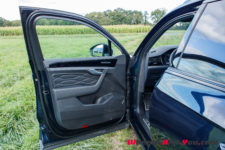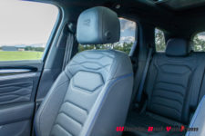Avec 4.90 m pour seulement cinq places et un empattement de 2.90 m, les dimensions laissent présager de l’espace à vivre. A son bord, je ne me sens pas étriqué et la largeur des sièges en cuir, massants, ventilés et multi-réglables en dit long sur la vocation de voyageur du Touareg. A l’arrière, il y a des rideaux de fenêtre et la banquette est coulissante sur 15 cm. Une astuce introduite par Renault, bien pratique pour augmenter l’espace. Même les grands gabarits sont parfaitement « logés ».