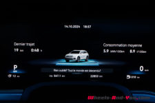 Batterie vide sur autoroute, la consommation est de 9.1 l/100km. Elle passe à 12 l/100km litres en ville, 8.2 sur route et 15.5 en montagne. La moyenne est de 11.2 l/100km avec la seule propulsion thermique. Il faut donc recharger tous les soirs pour repartir avec les 51 kilomètres d’autonomie électrique ; j’ai ainsi mesuré une consommation hybride qui tombe à 8.2 l/100km de moyenne.