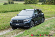 Beaucoup d’aides veillent et assistent – parfois un peu trop – le conducteur. En option à CHF 1’770.-, on peut avoir la vision de nuit et le stationnement automatique via la télécommande. Le Touareg peut également évoluer dans le désert ou tout autre terrain instable. A cet effet, il dispose d’un mode offroad. On peut remonter l’assiette via la molette située sur l’accoudoir et en quelques secondes, le Touareg offre la possibilité de crapahuter hors des sentiers battus. J’ai bien sûr essayé mais après une bonne pluie, les pneus routiers perdaient toute leur adhérence. Pour la descente, l’électronique régule les freins et gère les 2.6 tonnes de l’engin.