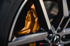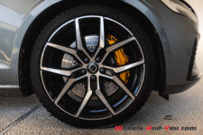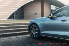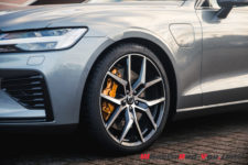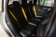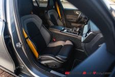 C’est d’autant plus flagrant sur cette mouture Polestar Engineered. Les particularités sont principalement les grosses jantes 20 pouces (en option, 19 pouces de série), les différents entourages (fenêtres, calandre, etc) en noir, tout comme les sorties d’échappement, mais aussi les imposantes pinces de freins oranges/dorées. Certains trouvent que c’est un peu flashy, pour ma part j’aime beaucoup. De plus, cela s’accorde particulièrement bien avec la teinte « Osmium Grey » de notre voiture. Un gris de plus comme je peux le dire souvent, mais j’avoue que celui-ci sort du lot et son rendu est vraiment sympa. Sans compter qu’il sied parfaitement à cette V60.