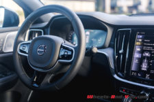 Ce dernier point est, à mon goût, le véritable le bémol de la voiture, à savoir un ressenti quasiment inexistant dans le volant. C’est en fait plutôt un non-feeling, tant la direction ne remonte aucune information. Certes, je ne devrais pas être surpris puisque je l’avais déjà constaté lors de mon essai du XC60 T6 et que c’est quelque chose de récurrent lorsque je prends les commandes d’une Volvo. Sauf, car oui il y a une exception, lorsque j’avais essayé la précédente V60 Polestar ! Et avec le patronyme de cette nouvelle version, j’espérais justement que ça soit similaire. Malheureusement non ! A priori c’est une question de goût, car la clientèle type de la marque apprécie justement la douceur et le confort de la conduite Volvo. Ma passion de la conduite dynamique fausse bien évidemment mon jugement, il est donc impossible d’en tenir rigueur au constructeur suédois. Néanmoins, pourquoi s’obstiner à proposer des déclinaisons qui se veulent sportives si elles ne le sont pas vraiment ?
