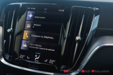 Objectif premier de l’hybridation : proposer une consommation réduite et la fiche technique se veut aussi très aguichante avec une valeur en cycle mixte WLTP de 2.2 l/100km. Les chiffres annoncés sont déjà très difficiles à atteindre avec une auto standard, mais c’est encore plus utopique avec une hybride. Pour ma part, je mesure une moyenne de 7.2 l/100km sur la totalité de mon essai mélangeant tout style de route. Cela s’explique par le fait qu’il est impossible de tout le temps bénéficier du moteur électrique, vu que son autonomie annoncée est de seulement 35-40 km. Si vous faites exclusivement des petits trajets urbains et que vous rechargez votre V60 tous les soirs, il est bien clair qu’il sera envisageable de ne quasiment pas consommer d’essence. Mais dès que vous empruntez les autoroutes, l’autonomie des batteries fond comme neige au soleil. D’ailleurs, je désactive régulièrement l’utilisation du moteur électrique lors des longs trajets sur voies rapides afin de conserver les ressources des batteries pour les déplacements en ville. Je pense que c’est dans cette optique qu’il faut voir l’intérêt d’un véhicule hybride.
