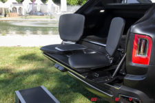 Nous n’avions pas parlé au moment de sa présentation, mais j’ai pu profiter de tester les deux sièges qui se trouvent dans le coffre. La « Viewing Suite » comme l’appelle le constructeur. A moins d’être un adepte des matchs de polo ou des courses de chevaux, et surtout de pouvoir y assister depuis un espace qui permet de parquer sa voiture, c’est une option plutôt inutile. Mais croyez-moi, assis à cet endroit à observer les sublimes automobiles présentes dans les jardins du Château de Coppet est un moment unique. Il suffit d’un bref instant comme celui-ci pour rendre cette option totalement indispensable.