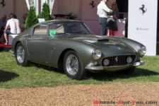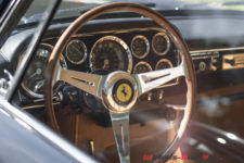 Autre présence spectaculaire, la Ferrari 250 GT SWB Berlinetta Speciale de 1962. Une auto dessinée par Giugiaro et carrossée par Bertone. C’est un exemplaire unique dont la calandre « Shark Noze » rend hommage la Ferrari 156, la Formule 1 qui a permis à Phil Hill de remporter le titre de Champion du Monde en 1961. Pour rester dans le thème « Short Wheel Base by Ferrari », je ne résiste pas à un duo de charme composé d’une magnifique 250 GT SWB, uniquement en présentation devant le stand Ferrari, et d’une sublimissime 250 GT SWB California Spider. La première est à mes yeux le saint graal ultime de l’automobile mais, au vu de la cote actuelle, elle devra rester un rêve totalement irréalisable. Plus raisonnable, quoi que, j’ai eu un véritable coup de coeur pour une Ferrari 330 GT America de couleur vert très foncé avec un intérieur brun caramel. Un combo typiquement anglais mais qui sied parfaitement à cette belle italienne.