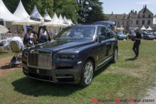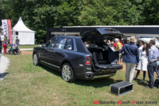 Petit intermède pour parler d’une auto moderne dont la présence ne passe pas inaperçue : le Rolls-Royce Cullinan ! En effet, difficile de ne pas remarquer le mastodonte anglais qui trône à l’entrée du château. Un deuxième exemplaire se trouve dans l’enceinte devant le stand du constructeur. Ce dernier profite de l’événement pour le présenter en avant-première, confirmant ainsi un soutien majeur à ce Concours d’Elégance mais aussi prouvant l’importance du marché suisse pour la marque et surtout pour ce modèle.