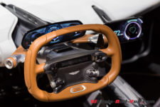 Alors que l’Aston Martin Valkyrie ne parcoure pas encore les routes du monde, la marque britannique en dévoile une descendante, hypercar elle aussi, à l’esprit plus confort et moins extrême : l’AM-RB 003. Les hommes de Gaydon se veulent clairs : il ne s’agit pas là d’une pâle copie de la Valkyrie mais bel et bien d’une automobile à part, profitant de la nouvelle ère technologique du constructeur. Le modèle étant toujours en développement, Aston Martin se montre encore timide en information. On sait cependant que la belle embarquera un V6 turbo accompagné d’une hybridation, monté en position centrale arrière. Comme le laisse supposer le « RB » inséré dans le nouveau nom de code, Red Bull Advanced Technologies est étroitement lié à la création de la voiture, tant au niveau du design que de l’ingénierie. Parmi les innovations de pointe présentées, on peut citer la technologie FlexFoil, issue de chez FlexSys Inc. Intensément testé par la NASA, le matériau se déforme à mesure que la vitesse augmente, permettant ainsi de faire varier l’appui sans mouvement mécanique. L’habitacle se veut accommodant et est clairement orienté confort. Les portes s’ouvrent telles celle d’une LMP1, en basculant vers l’avant, emportant par la même une partie du toit, ce qui autorise des entrées et des sorties plus aisées.