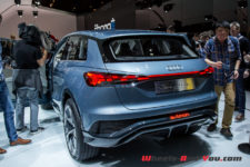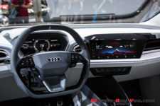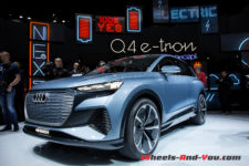 C’est année, c’est la marque aux quatre anneaux qui lance le grand bal des conférences constructeurs. Le moins que l’on puisse dire est que le maître mot chez Audi est résolument électrification. Pour illustrer son propos, la marque allemande présente le concept Q4 e-tron, qui préfigure officiellement d’un modèle de série qui sera présenter fin 2020. La Q4 e-tron repose sur la plateforme modulaire d’électrification MEB et emporte deux moteurs électriques : 150 kW et 310 Nm à l’arrière et de 75 kW et 150 Nm à l’avant. L’ensemble développe 306 chevaux et permet d’achever le 0 à 100 km/h en 6.3 secondes. Le SUV est limité électroniquement à 180 km/h. L’accumulateur intégré au plancher stocke 82 kWh, ce qui permet de parcourir 450 km. Les données techniques indiquent que 80% de la charge peut être atteint en 30 minutes. Audi annonce que ce ne sont pas moins de 12 modèles intégralement électriques qui vont être commercialisés d’ici 2025.