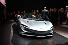 Peu connu du grand public, nettement plus des amateurs de courses automobiles, Ginetta se présente cette année à Genève avec leur toute première supercar, après 60 années d’existence : l’Akula. Quelques spécificités ont été communiquées durant la conférence de présentation. On sait que la belle au look ciselé embarque un V8 atmosphérique placé à l’avant, développant 600 chevaux et 700 Nm de couple. Utilisant certaines pièces du prototype de course LMP1 fabriqué par la marque de West Yorkshire, l’Akula pèse un tout petit 1’150 kilos et atteint la vitesse de pointe de 320 km/h. Ce ne sont que 20 exemplaires qui sont prévus à la production d’ici 2020, et le prix demandé est de tout de même 340’000 livres sterling, soit presque CHF 450’000.- ! Pour ce prix, Ginetta propose un petit bonus : il sera possible pour les futurs propriétaires de l’Akula de devenir le temps d’une journée pilotes d’un proto G58, voiture proche du style LMP2.