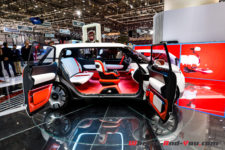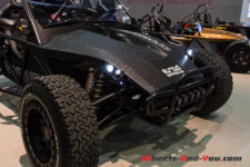 Qu’en est-il des constructions suisses dans ce Salon de l’Auto du bout du lac Léman ? Il n’y en a un qui fait bel et bien de la résistance et propose, sur un stand dédié, trois modèles, dont deux prototypes : Kyburz. Le nom vous est peut-être inconnu et pourtant, si vous êtes suisse, vous connaissez leur véhicule le plus populaire : le tricycle de la Poste ! Dans une volonté de développement et d’élargissement de leur gamme, la marque zurichoise a décidé de lancer un véhicule « fun », homologué et immatriculable comme véhicule léger : l’eRod, dont nous vous avions proposé une première prise en main l’année dernière. Le principe est simple : un châssis tubulaire, 30 cellules électriques pour une batterie stockant 19.2 kWh par recharge rapide et un moteur électrique de 61 chevaux pour 140 Nm de couple. En sachant que le véhicule pèse 600 kilos batteries incluses, on peut clairement se dire que l’amusement est au rendez-vous ! Côté prix, Kyburz annonce que le modèle est disponible à partir de CHF 42’500.-, ou CHF 39’500.-. Pourquoi cette différence de prix ? Tout simplement parce qu’il est possible d’opter pour la formule la moins chère, nommé « Séminaire de construction », où il est possible de tout simplement monter sa propre voiture, en une semaine ! L’eRod « fun » est décliné en deux modèles prototypes, toujours en cours de développement. Une version « race » pousse la puissance à 204 chevaux et atteint 200 km/h (contre 120 pour la déclinaison standard) tandis qu’une mouture tout-terrain, plus aboutie, se voit rehaussée et munie, entre autres, d’un pare-brise.