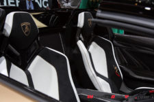 SVJ pour « Super Veloce Jotta » : ainsi sont siglés les modèles les plus vigoureux de la marque italienne. Les chiffres de la décapotable parlent par eux même : le V12 atmosphérique délivre 770 chevaux à 8’500 t/min et offre 720 Nm de couple à 6’750 t/min. Ces performances font de ce moteur le V12 le plus puissant jamais produit par la marque italienne. De quoi abattre le 0 à 100 km/h en 2.9 secondes et d’atteindre 350 km/h de vitesse de pointe. Mais comme le disait une célèbre publicité, sans maîtrise, la puissance n’est rien. Pour rendre efficiente pareille voiture, Lamborghini a implémenté la dernière version de l’ALA, « Aerodinamica Lamborghini Attiva ». Complété par le « Lamborghini Dinamica Veicolo Attiva 2.0 », l’aérodynamique est gérée en temps réel, permettant des ajustements d’ailerons actifs en moins de 500 millisecondes. Le toit, composé de fibres de carbone modelées à haute pression, se fixe grâce à des montures à retrait rapide. Il est à noter que la Roadster ne pèse que 50 kg de plus que la Coupé, avec un poids total de 1’575 kg. Tel objet est assez naturellement exclusif, et s’inscrit dans la une certaine rareté. Ainsi, l’Aventador sera produite à seulement 800 exemplaires. Il faudra débourser quelques 387’007.- euros pour acquérir la belle, dont les premières livraisons sont planifiées pour l’été 2019.