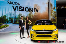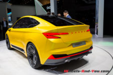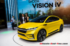 Dans les semaines précédent le Salon, Skoda avait présenté son concept d’idée Vision iV, et promettait par le même temps de belles annonces. La 89ème édition étant lancée, la marque du groupe VW débarque avec le concept-car, bien réel cette fois. Au programme, beaucoup de technologies, avec des assistances à la conduite de niveau 3 permettant une autogestion sur autoroute, des rétro-caméras et un design clinquant, à commencer par la couleur de carrosserie. Tout de jaune vêtue, la voiture interpelle, plus encore avec sa ligne lumineuse transversale reliant les projecteurs avant. Les lignes sont sculpturales, volontaires, avec un style global nerveux et racé. Le Vision iV repose sur la plateforme MEB et voit sa motorisation totalement électrifiée. Deux moteurs, positionnés l’un à l’avant et l’autre à l’arrière, créent un système de 225 kW (305 chevaux) et sont couplés à une transmission intégrale. Les performances sont plus que correctes, avec un 0 à 100 km/h accompli en 5.9 secondes tandis que la vitesse de pointe atteint 180 km/h. Côté autonomie, la batterie lithium-ion refroidissement liquide de 83 kWh autorise un voyage de 500 km selon la norme WLTP. La recharge à 80%, en mode rapide, s’effectue en 30 minutes.