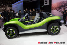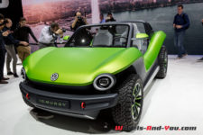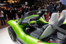 Indéniablement, le groupe VW est en mode « opération marketing » en ce qui concerne sa plateforme modulaire de propulsion électrique, ou MEB pour les intimes. En plus de l’Audi Q4 e-tron concept et de la Seat el-Born concept, il faut ajouter la Volkswagen I.D. BUGGY aux rangs des « proofs of concept ». Si ses cousines ont plus pour vocation de traduire la volonté de leur marque de s’installer durablement dans l’électrification totale des modèles, l’I.D. BUGGY est le moyen trouvé par les hommes de Wolfsburg pour faire du pied aux partenaires extérieurs, potentiellement constructeurs de petites séries. Car c’est dans la totale modularité que réside le principe de ce concept-car, idée issue des buggys californiens des années 60 : un châssis polyvalent et une motorisation robuste et simple. Le reste est l’affaire de start-ups un brin imaginatives. Pour de ce qui est du modèle siglé VW, le retour dans le passé est flagrant. Exit les portes et le toit, le design est épuré et mise sur une composante pratique forte. Le tout dans un mode de propulsion 100% électrique, reposant sur un moteur de 204 chevaux placé à l’arrière et une batterie haute tension.