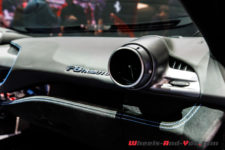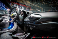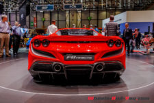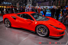 S’inscrivant dans la longue lignée des 308, 328, 348, 355, 360, F430, 458 et dernièrement de la 488, la F8 Tributo demeure fidèle aux principes qui ont fait le succès des Ferrari : un coupé 2 places avec un moteur central arrière. La F8 doit son nom au nombre de cylindre de son moteur et « Tributo » signifie « Hommage » qu’elle rend à la F40 et la 308 par son design. Le style évolue dans la continuité avec une face avant très « Portofino ». Dans l’ensemble la voiture est, stylistiquement parlant, encore plus agressive tout en conservant ses rondeurs. A l’arrière on retrouve les célèbres paires de feux ronds. L’intérieur, très sportif est des plus épuré et la plupart des commandes seront gérées via un écran 7 pouces très ergonomique. Côté poids, la voiture gagne encore 40 kg ce qui est incroyable. Le reste est à l’avenant avec un 2.9 secondes pour le 0-100 km/h, 7.8 secondes pour le 0-200 km/h et une vitesse de pointe de 340 km/h. Que dire d’autre… Un moteur V8 de 3.9 litres issu de la 488 Pista légèrement amélioré avec 720 chevaux à 8’000 t/min et un couple de 770 Nm dès 3’250 t/min. Nous sommes maintenant à 185 ch/l !!! Pour le reste je vous laisse juger nos photos et vous faire votre propre avis. A la rédaction, nous sommes tous impatients de l’essayer et surtout d’entendre cet échappement directement dérivé de la 488 Challenge.