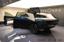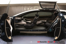 Le temps est toujours à la recherche pour la marque renaissante Lagonda intégrée au stand Aston Martin. Les britanniques proposent cette année un concept nommé « All Terrain ». Pure étude de style, elle tend à fixer les futurs éléments signature de la marque. Après avoir pris inspiration dans le légendaire avion Concorde pour son « Vision Concept », Lagonda explore l’univers des yachts de luxe. Les lignes sont ainsi tendues, hautes, courbes en proue et poupe. L’objectif final du design est d’ouvrir l’espace intérieur et d’autoriser un maximum d’espace de stockage pour les batteries, les modèles de la marque étant prévus pour être purement électriques. Le début de production du futur premier véhicule de série est planifié pour 2022, à l’usine Aston Martin de St Athan, au Pays de Galles.