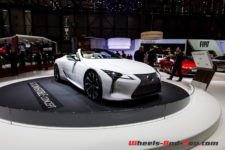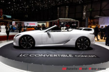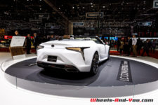 A l’occasion du Salon de Genève, Lexus met en avant deux autos présentées récemment mais qui font leur première européenne ici à Palexpo. Tout d’abord la déclinaison Convertible de la LC dont nous vous avions proposé un essai l’année dernière. Pour l’instant ce n’est encore qu’un concept-car, mais le produit semble parfaitement abouti pour être produit en série. L’avenir proche nous le confirmera sûrement. Ensuite il s’agit du coupé RC F en version déluré qui porte le nom de Track Edition. Look bestial et surtout toute une série d’attributs pour rendre l’auto radicalement sportive. Sous le capot, le V8 reprend les caractéristiques de la version normale, mais agrémenté de tous les artifices racing, cela promet bien des sensations.