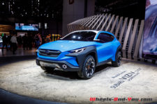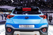 Sur le stand Subaru, l’attention est clairement captée par le « Viziv Adrenaline Concept ». La marque souhaite sans aucun doute avec ce modèle diriger son design extérieur vers un terrain plus audacieux. En témoignent les nombreuses lignes saillantes et hautes, l’utilisation prononcée de plastique noir et les jantes biton, massives et intégrant des gommes taillées pour le terrain. Ce concept laisse définitivement penser qu’un modèle de série va en découler prochainement, très probablement le futur XV ou son remplaçant.